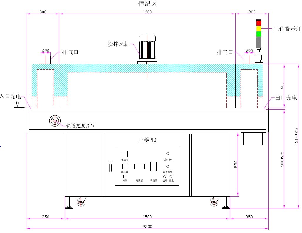不銹鋼內膽三防膠烘干爐1段溫區可調式50-350mm寬幅調節