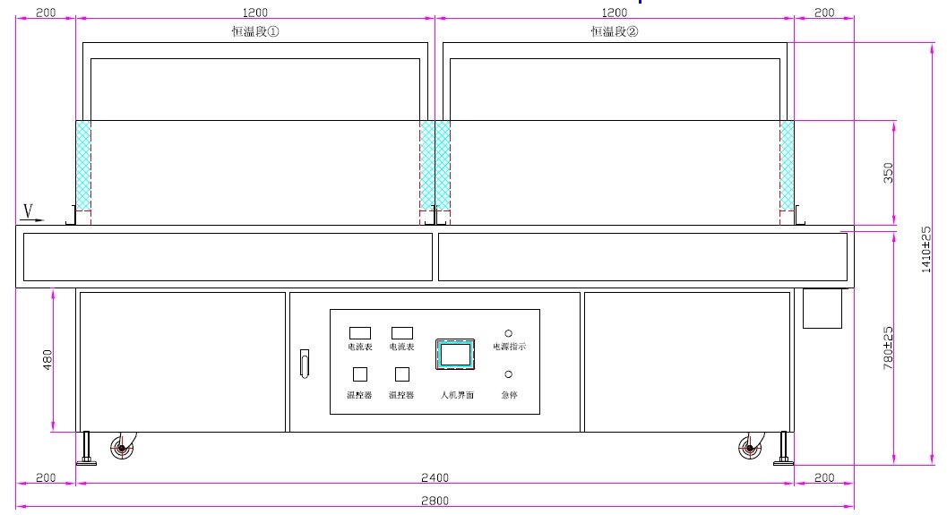 - 不銹鋼內(nèi)膽三防膠烘干爐1段溫區(qū)可調(diào)式50-350mm寬幅調(diào)節(jié)