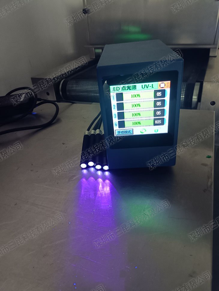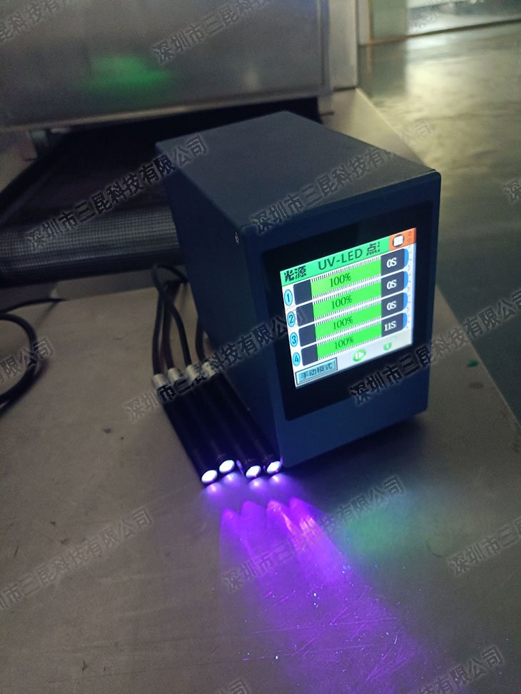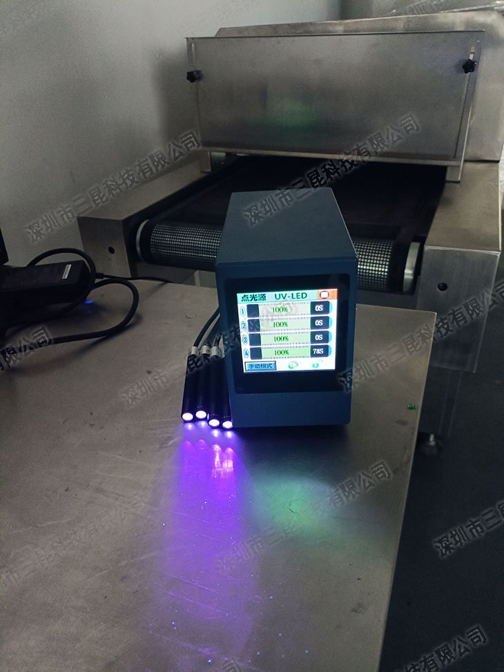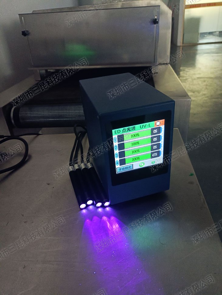 本設(shè)備采用365-405nm多波段UV-LED光源,支持4個(gè)獨(dú)立照射頭同步操作,光強(qiáng)達(dá)7000mW/cm2,適配膠水、油墨等快速固化。獨(dú)特風(fēng)扇散熱設(shè)計(jì)確保光功率